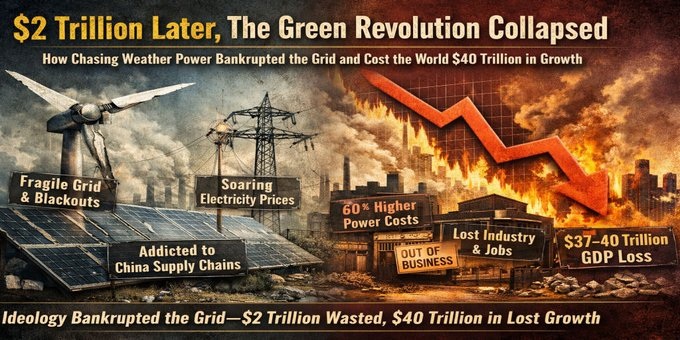 $2 Trillion Later, The Green Revolution Collapsed: How Chasing Weather Power Bankrupted the Grid and Cost the World $40 Trillion in Growth
