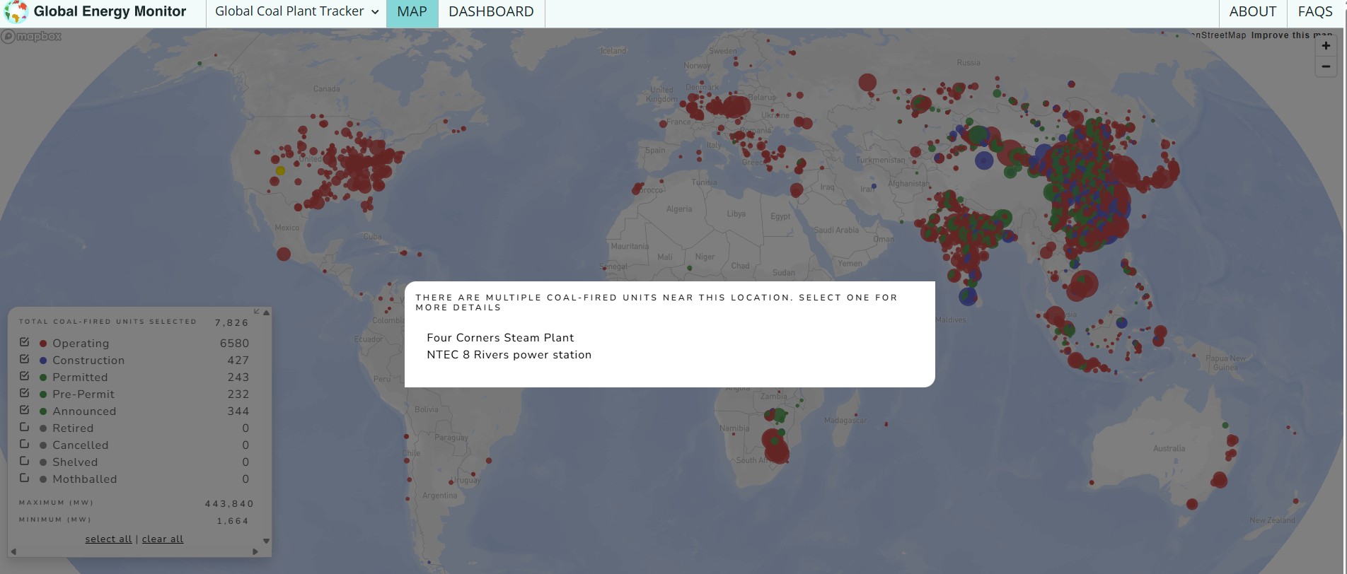You can see on the map below from the Global Energy Monitor that there are 243 new coal plants permitted, 427 under construction, 232 pre-permitted, and 344 announced. Including the For Corners Steam plant in the US.