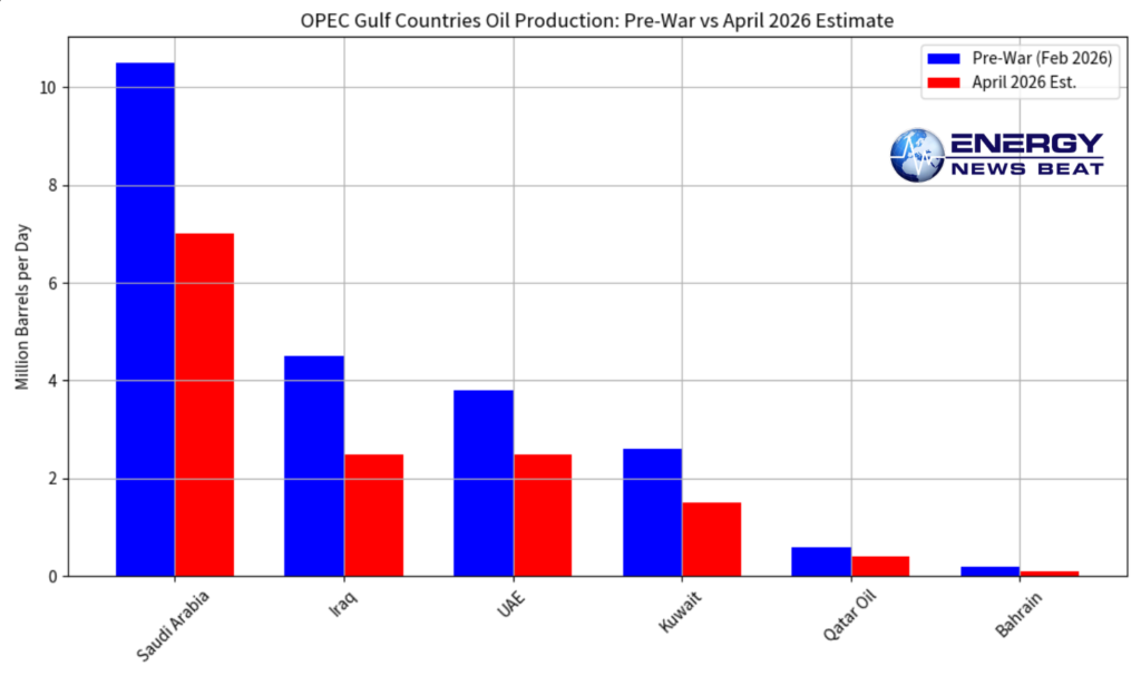 March 2026: Iraq, Saudi Arabia, Kuwait, UAE, Qatar, and Bahrain collectively shut in 7.5 million bpd of crude.